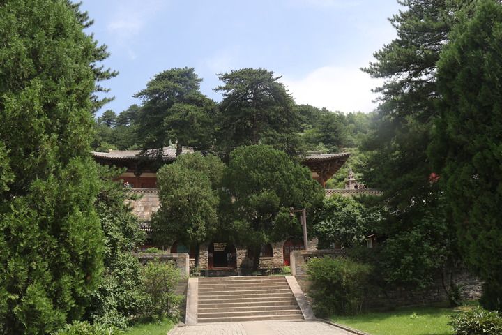 佛光寺,距离五台山寺庙集中的台怀镇有四五十公里远。寺周围东、南、北三面环山,只有西面低下而开阔,因此古寺因地势而建,坐东朝西,高低层叠。