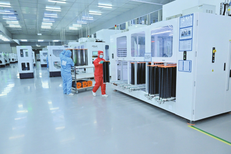 一道新能源科技(忻州)有限公司14GW光伏电池生产基地全自动化车间。