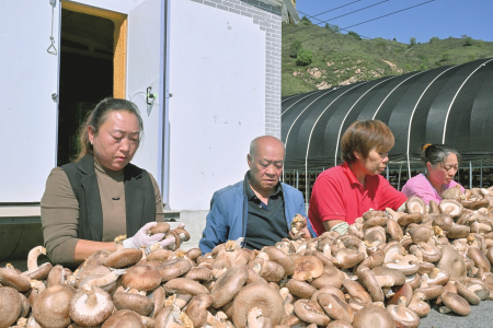 五台县石咀镇后坪村香菇大棚给村民带来好光景。
