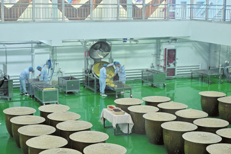 山西雁门王酒业有限公司10万KL高端有机黄酒产业园工人忙碌生产。
