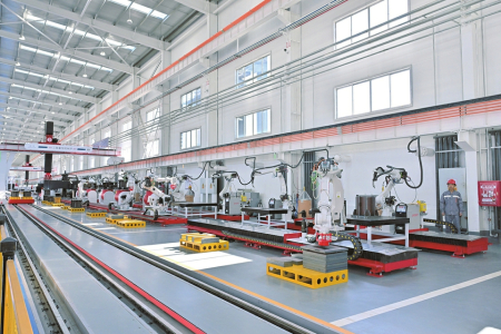忻府区宏厚装配式建筑科技产业园钢结构装配式建筑生产线。