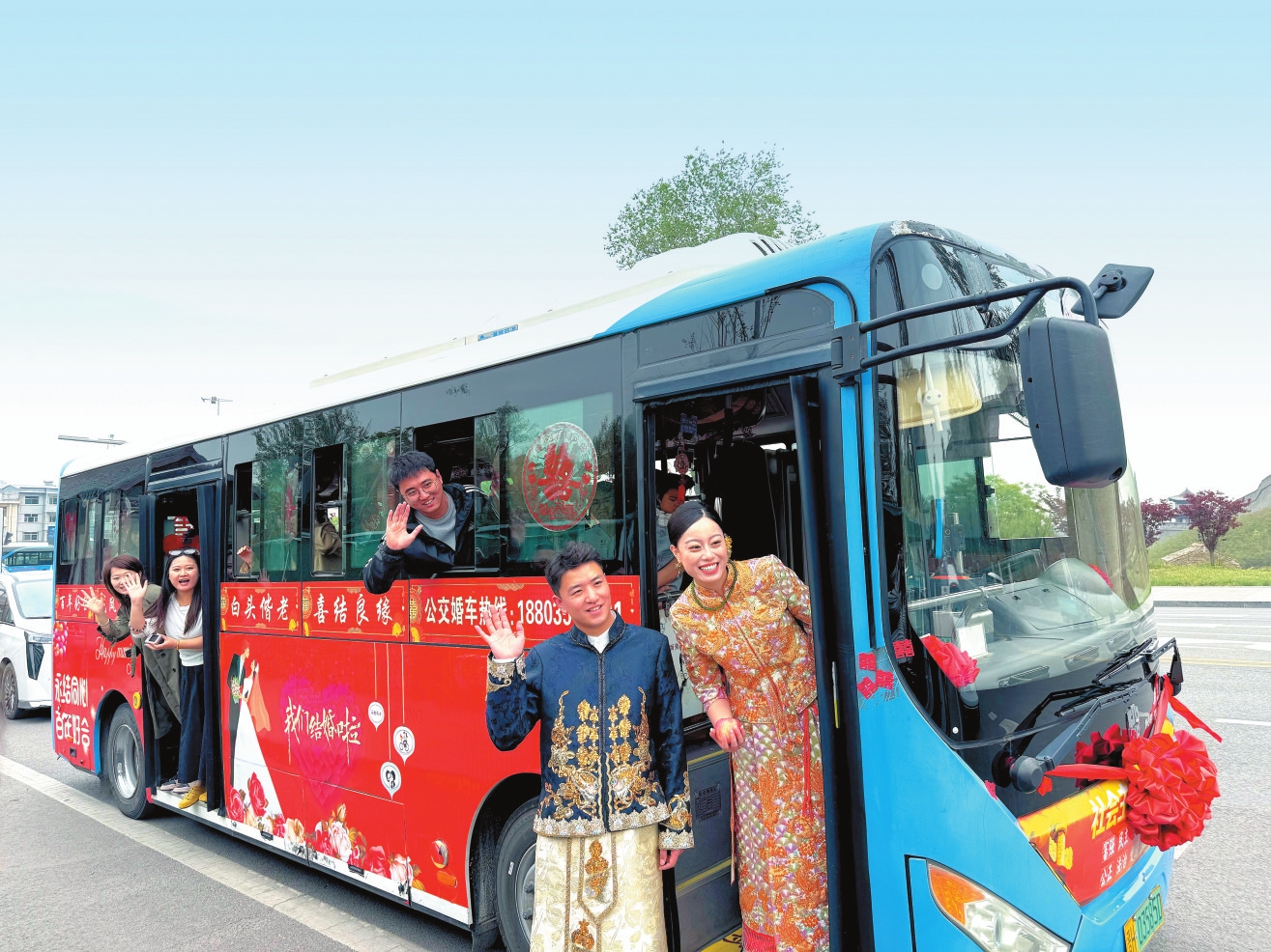 从事婚礼策划的新娘薛冰欣说“:起初家人担心公交婚车不够体面,但最终效果让亲友直呼‘比豪车更有温度’。我见惯了千篇一律的婚庆形式,轮到自己,就是想有打破传统、充满创意的体验。”新郎王子兵说:“我们的婚车或许不是最贵的,但我们的选择是最有意义的。”
