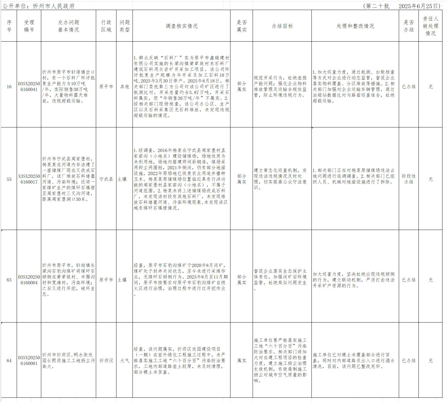 中央生态环境保护督察组群众信访举报转办和边督边改公开情况一览表(第二十批)