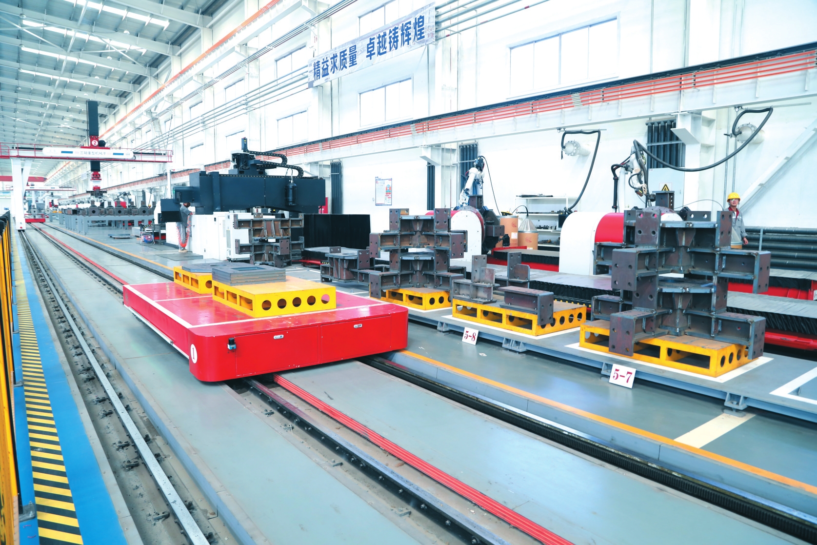 比如全流程智能化作业的钢结构构件成品焊接生产线,通过三轴机械手、双轴旋转变位机、焊接机器人等智能设备实现精准组装、焊接。经激光检测确保构件精度后,由打磨机械手完成自动化焊缝处理,再通过端面精铣和抛丸工艺提升成品质量,最后在全封闭的智能喷涂工作站完成涂装烘干。构件精度,居然精确到“丝”。