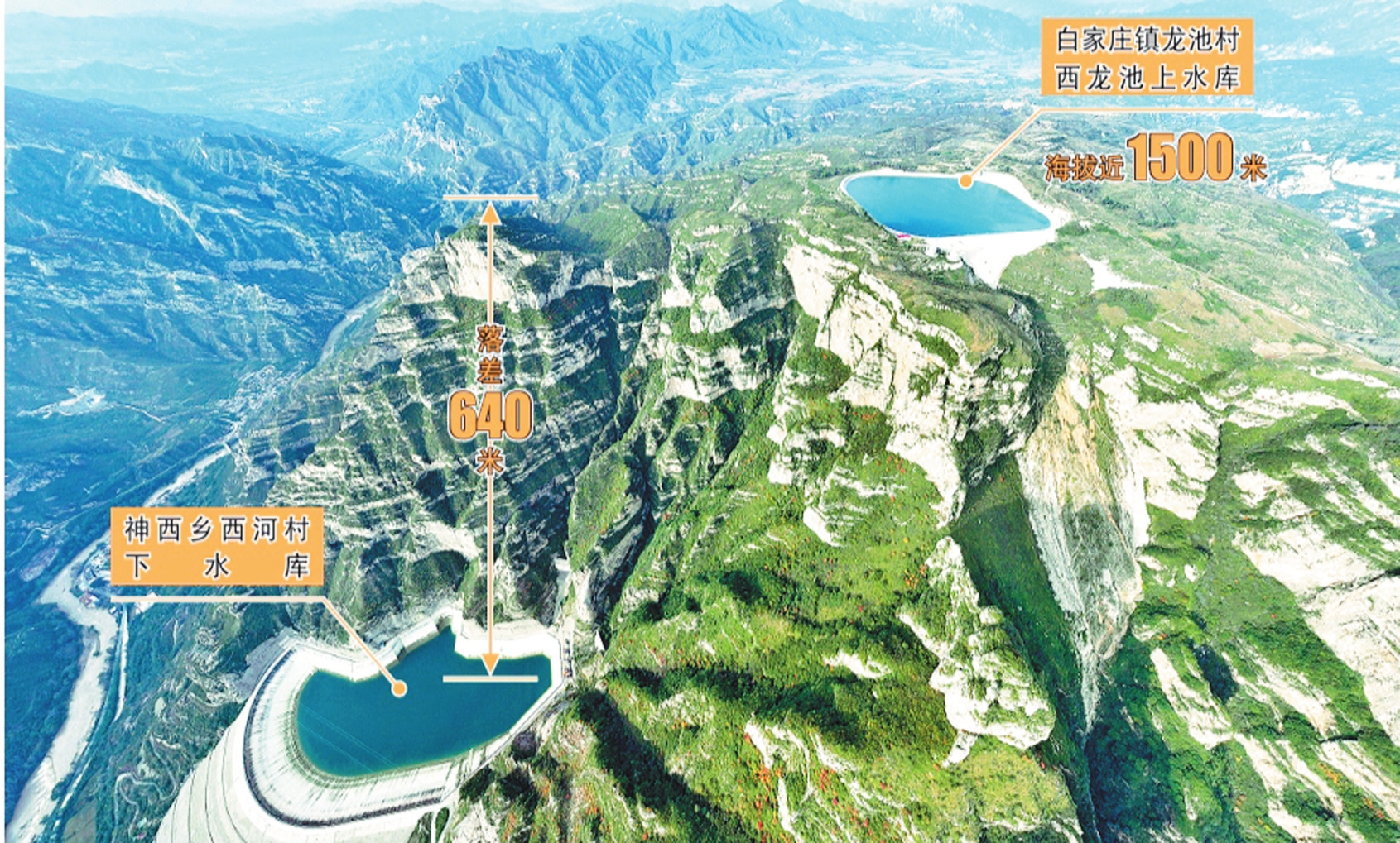 车行50分钟蜿蜒山路,从神西乡西河村的下水库,抵达海拔近1500米的白家庄镇龙池村西龙池的上水库,“天空之池”与“山谷之湖”遥相呼应,640米的落差让滹沱河水在群山间完成能量的循环转换。