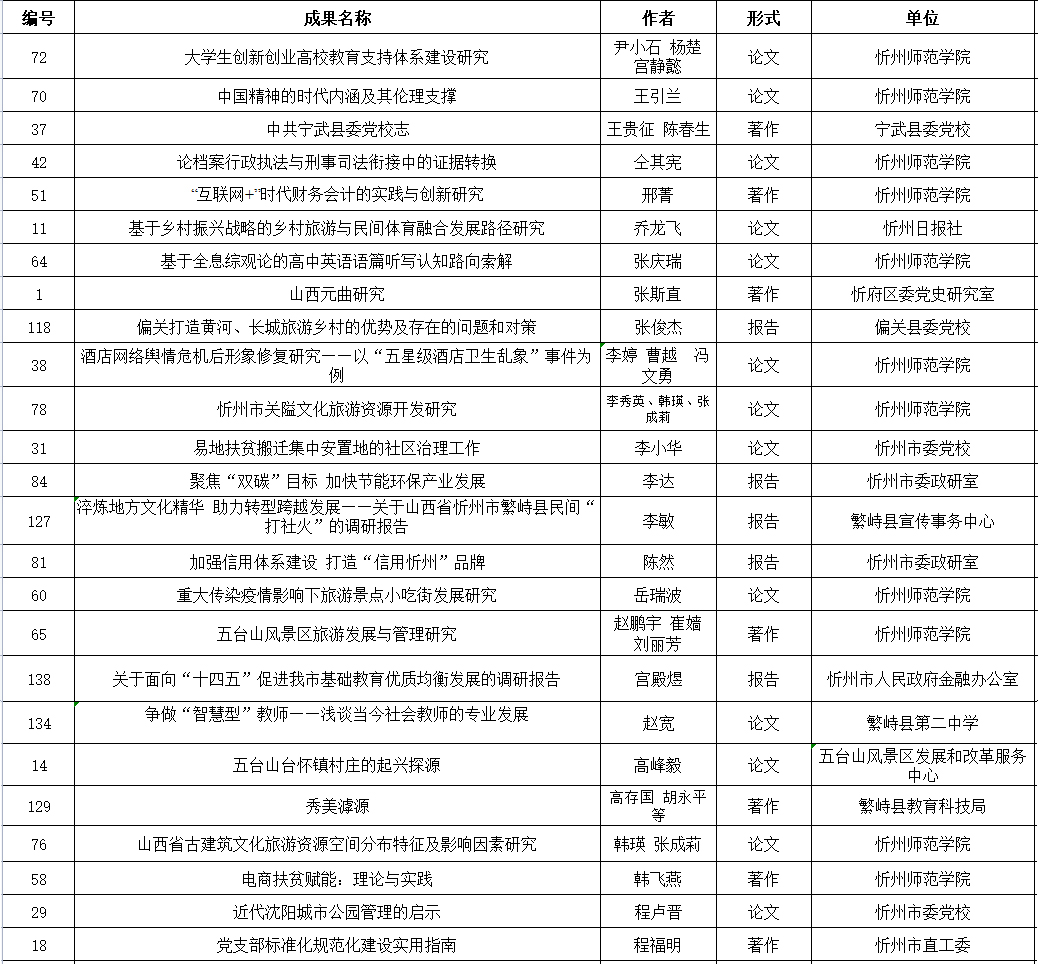 忻州市社会科学研究优秀成果二等奖获奖名单(共25项)(按姓氏笔画排序)