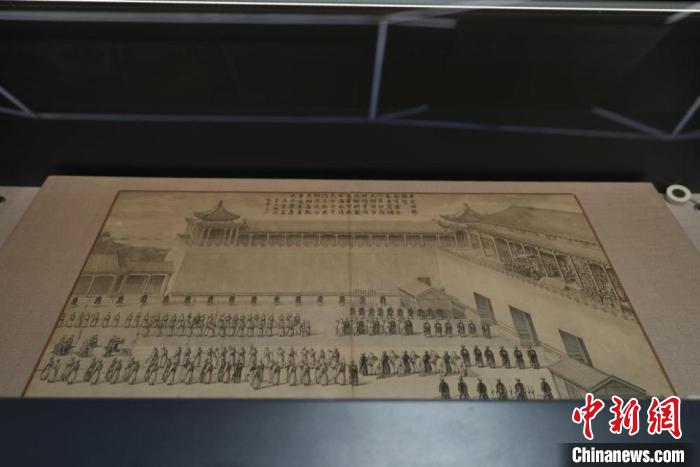 17世纪,随荷兰使团出行的约翰·尼霍夫在版画中描绘了使团在太和殿广场等待顺治帝接见的场面;堪称18世纪铜版画艺术的巅峰之作《乾隆平定准部回部战图》,于乾隆年间由意大利人郎世宁等宫廷西洋画师奉旨绘制。展览展出了《乾隆平定准部回部战图》的其中一幅作品真迹,绘图精美、镌刻精良,难得一见。