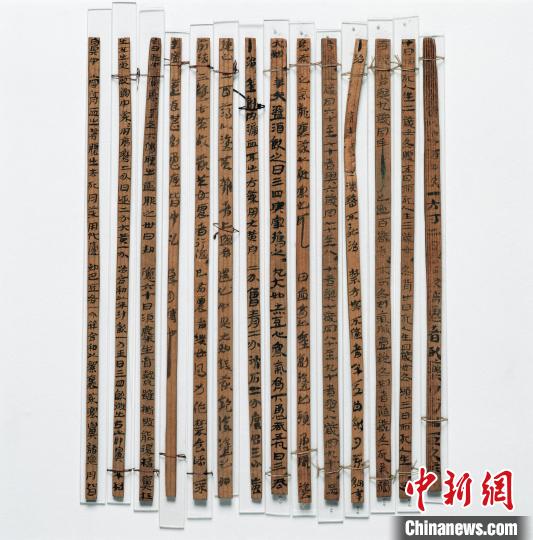 图为国宝级文物汉代《医药木简》。(资料图)甘肃省博物馆供图