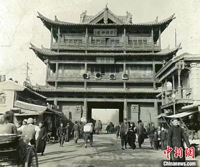 一百多年前,大同古城内的鼓楼。大同市古城保护和修复研究会 提供