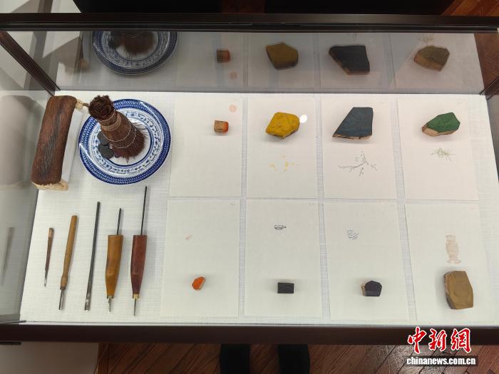 10月13日,中国饾版彩印信笺艺术展展出制作饾版彩笺的工具。 范宇斌 摄