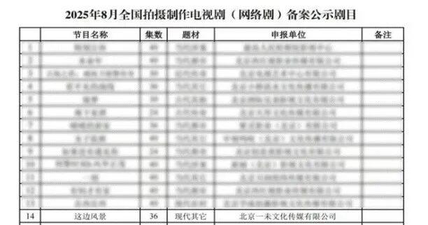 中新网北京10月13日电 近日,国家广电总局公示2025年8月通过备案的多部电视剧,根据王蒙茅盾文学奖获奖作品改编的《这边风景》名列其中,引起网络热议。