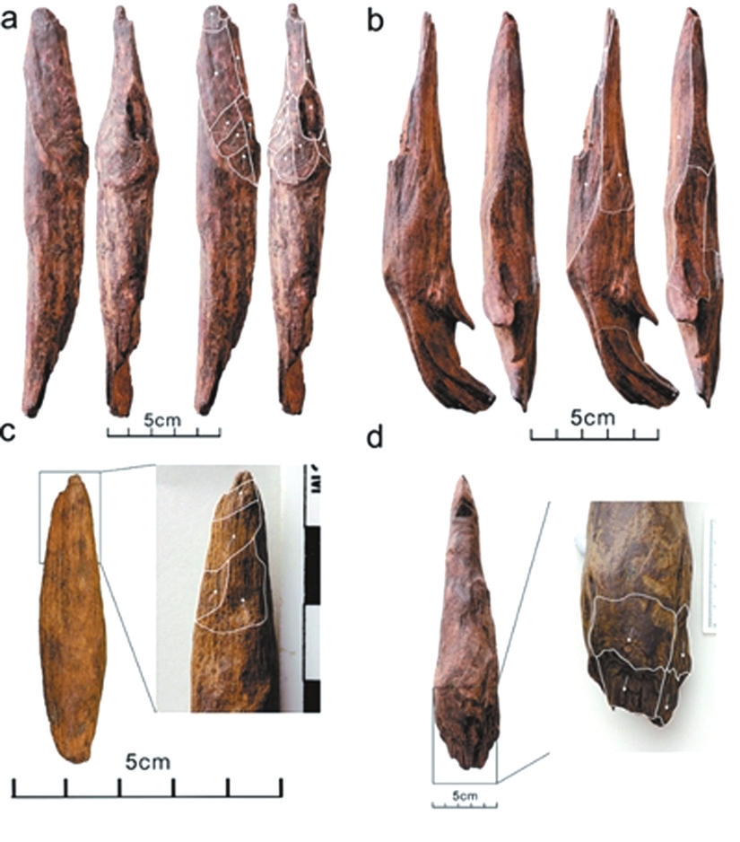 为论证这些木器的人工属性,研究团队开展了痕迹分析、残留物分析和实验模拟。结果表明,其中19件木器保留明显的削刮痕,17件尖端表面存在使用所产生的磨光和破损迹象。这些痕迹出现在特定部位并具有方向性,是确凿的人类加工与使用的证据。一些木器尖端保留土壤残留物,从其上提取到植物淀粉粒,进一步证明这些木器主要功能是挖掘可食性的地下植物根茎。针对这些木器的模拟实验表明,此类木器可以用简单石器加工出来,并可有效用来挖掘植物的根茎。