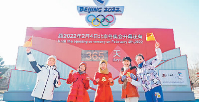 2月4日,河北张家口经开区的市民共同庆祝2022北京冬奥会开幕倒计时一周年。毕瑞翔摄(人民视觉)