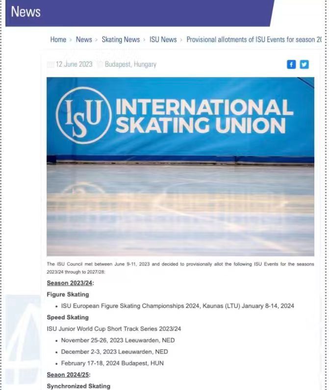新华社北京6月12日电(记者李嘉)国际滑冰联盟(ISU)理事会12日宣布,2026年四大洲花样滑冰锦标赛将于2026年1月19日至24日在北京举行。这也是继2003年之后,四大洲锦标赛第二次落户北京。