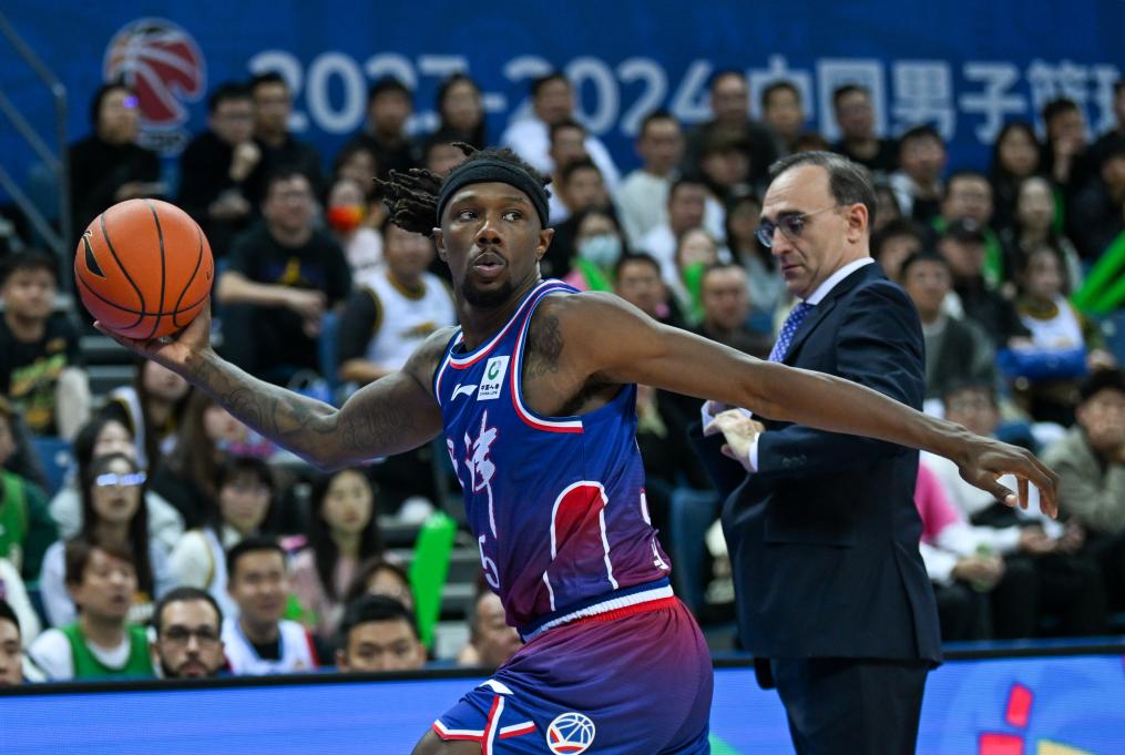 11月6日,天津队球员马克(左)在比赛中。新华社记者 孙凡越 摄