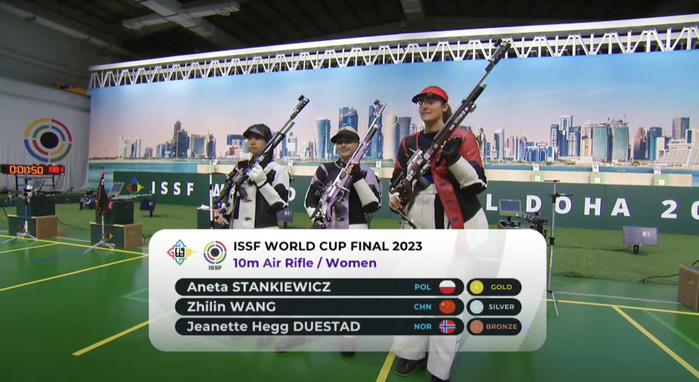 在女子10米气步枪资格赛中,王芝琳以634.2环的成绩位列榜首,中国队韩佳予和黄雨婷分别以第二名和第四名的成绩进入决赛。决赛中,波兰选手斯坦凯维奇发挥神勇,以253.3环的成绩夺冠,王芝琳以0.7环之差获得银牌,挪威选手迪斯塔德拿到铜牌。杭州亚运会冠军黄雨婷排在第四位,韩佳予位列第六。