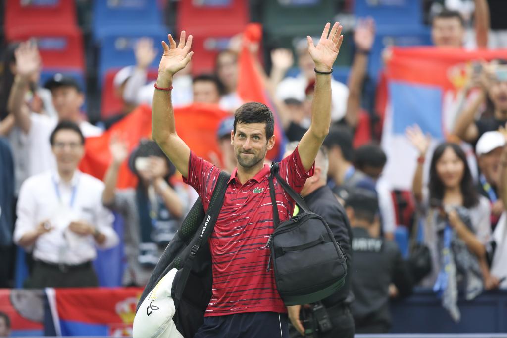 2019年10月11日,在2019年上海大师赛男子单打四分之一决赛后,焦科维奇向观众致意。新华社记者 丁汀 摄