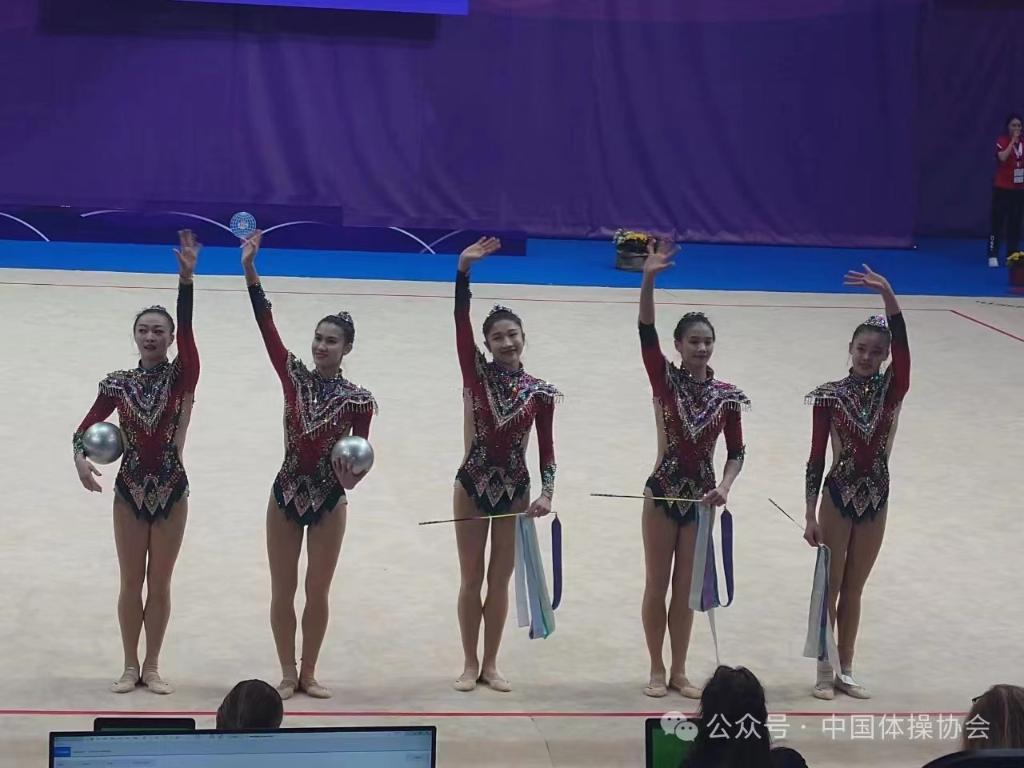 最终,中国队在本站比赛共获得1金1银2铜。在集体项目里,中国队获得全能银牌,5圈和3带2球单项的铜牌。本赛季,集体组为备战巴黎奥运会准备了两套全新节目,其中5圈项目《共生共舞》呈现环保主题,更具国际化视野;3带2球项目的成套《凤鸣凌霄》则以汉唐国风为主题,通过运用彩带模拟造型,表现古筝、琵琶等中国民族乐器的独特韵味。
