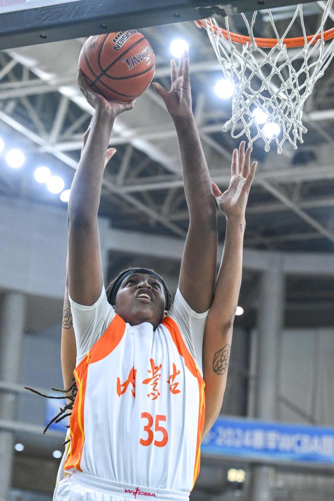 4月11日,内蒙古队球员琼斯在比赛中上篮。新华社记者 连振 摄
