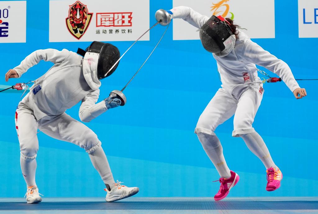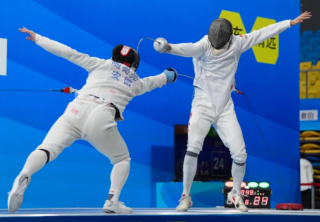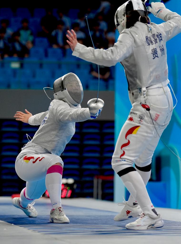 3日夺得女子佩剑个人金牌的杨恒郁领衔江苏一队,在女佩团体决赛中对阵由聂力、魏嘉怡、殷逸慧、贾晓晔组成的贵州队。为江苏队率先登场的傅颖开局落后,但她很快反超比分。第二个出场的庄晨艺继续扩大领先优势。江苏队此后始终保持领先,最终以45:34夺冠。
