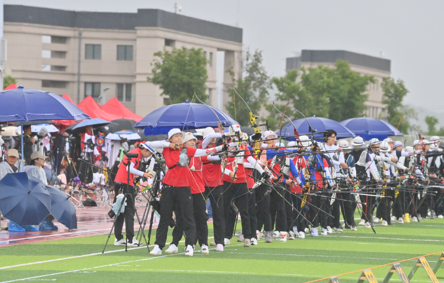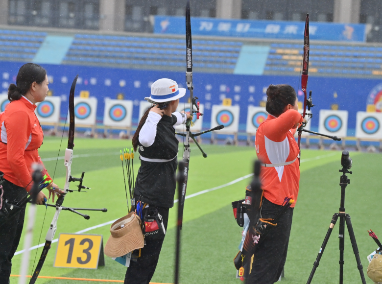 当日,天气凉爽,持续的降雨对运动员们提出了更高要求。“雨天比赛对箭的飞行有一定的影响,需要我们在比赛中及时调整,首战感觉发挥得还不错,个人赛进入了前六名,希望本站能够获得奖牌。”天津射箭队队员龙晓清说。