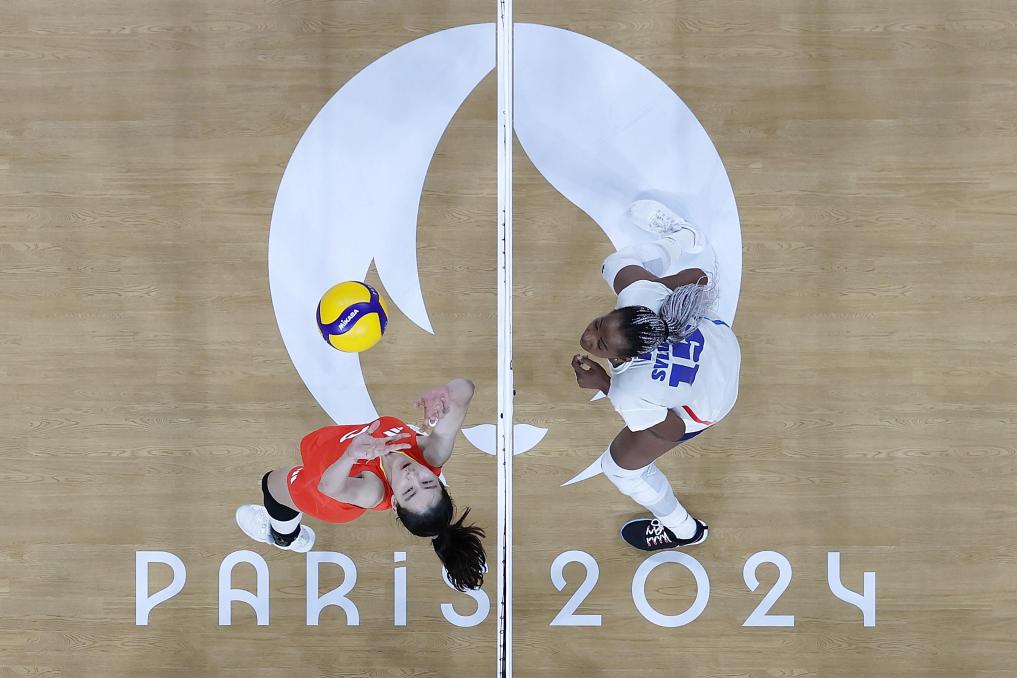 新华社巴黎8月1日电(记者王镜宇、卢星吉)在1日进行的巴黎奥运会女排A组第二轮小组赛中,中国队以3:0轻取东道主法国队,提前一轮锁定八强席位。