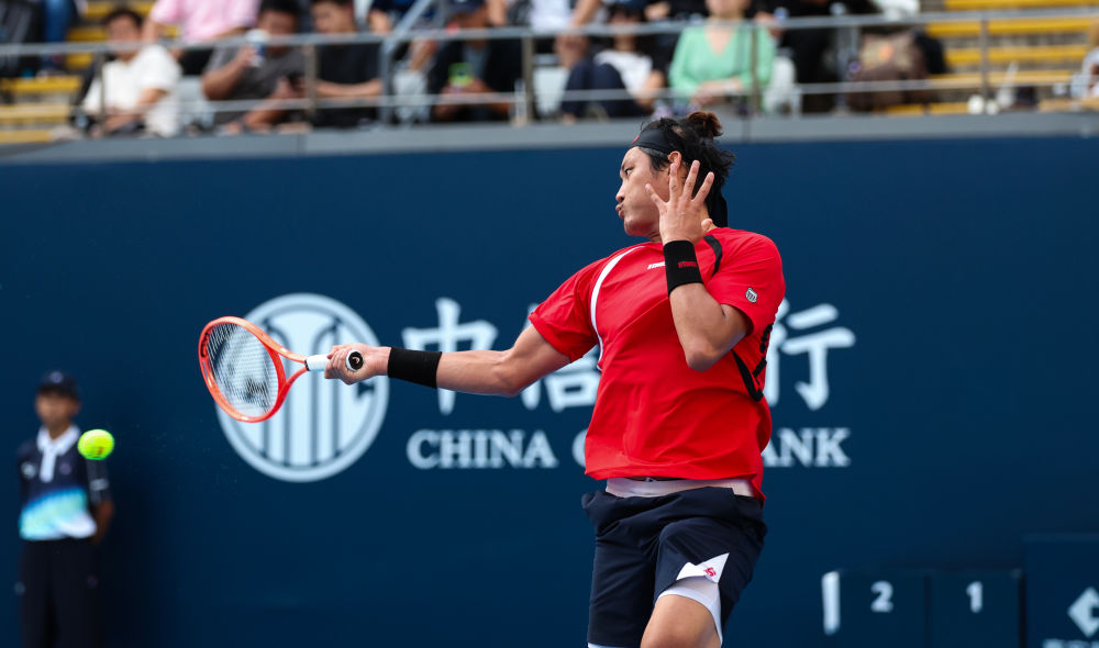 9月25日,张之臻在比赛中回球。新华社发(马子涵摄)