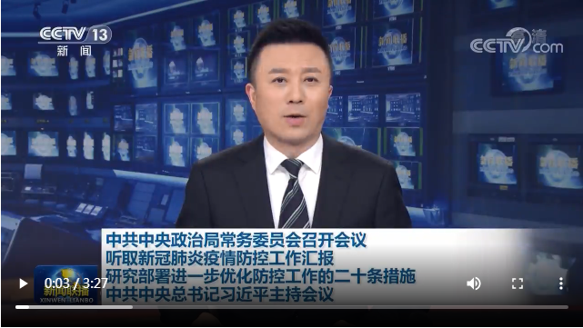 新华社北京11月10日电 中共中央政治局常务委员会11月10日召开会议,听取新冠肺炎疫情防控工作汇报,研究部署进一步优化防控工作的二十条措施。中共中央总书记习近平主持会议并发表重要讲话。