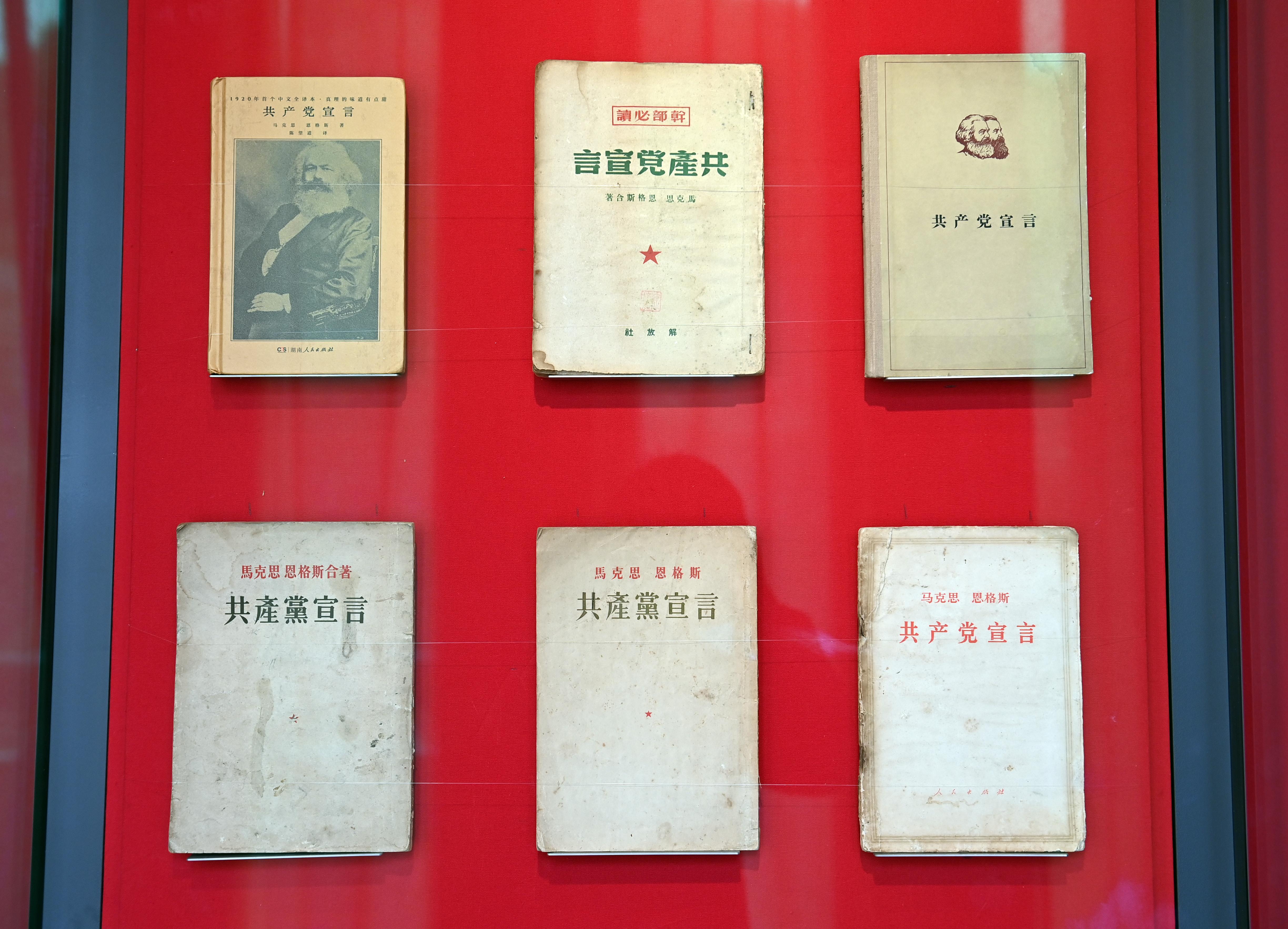 △中国国家版本馆中央总馆展示的不同版本的《共产党宣言》。