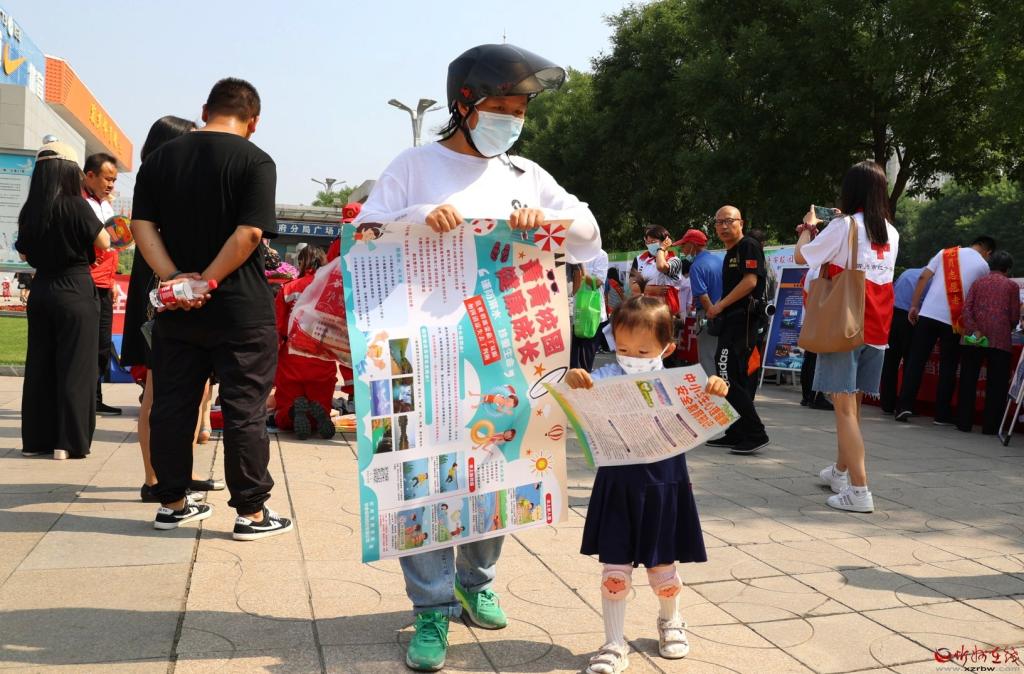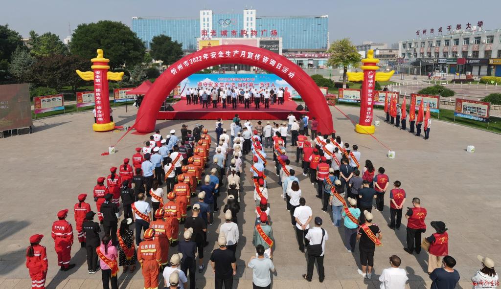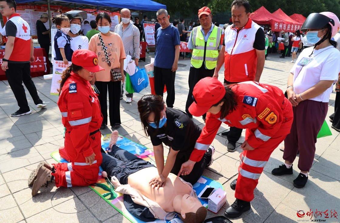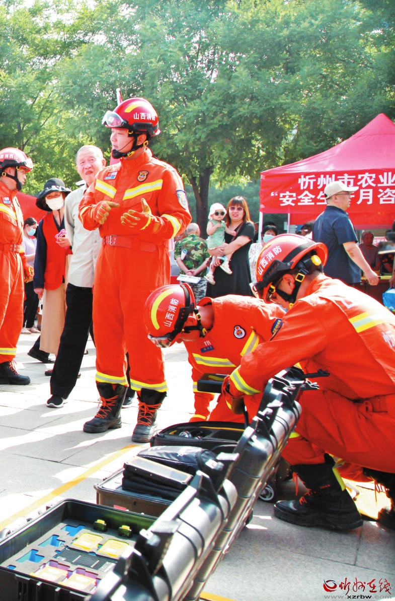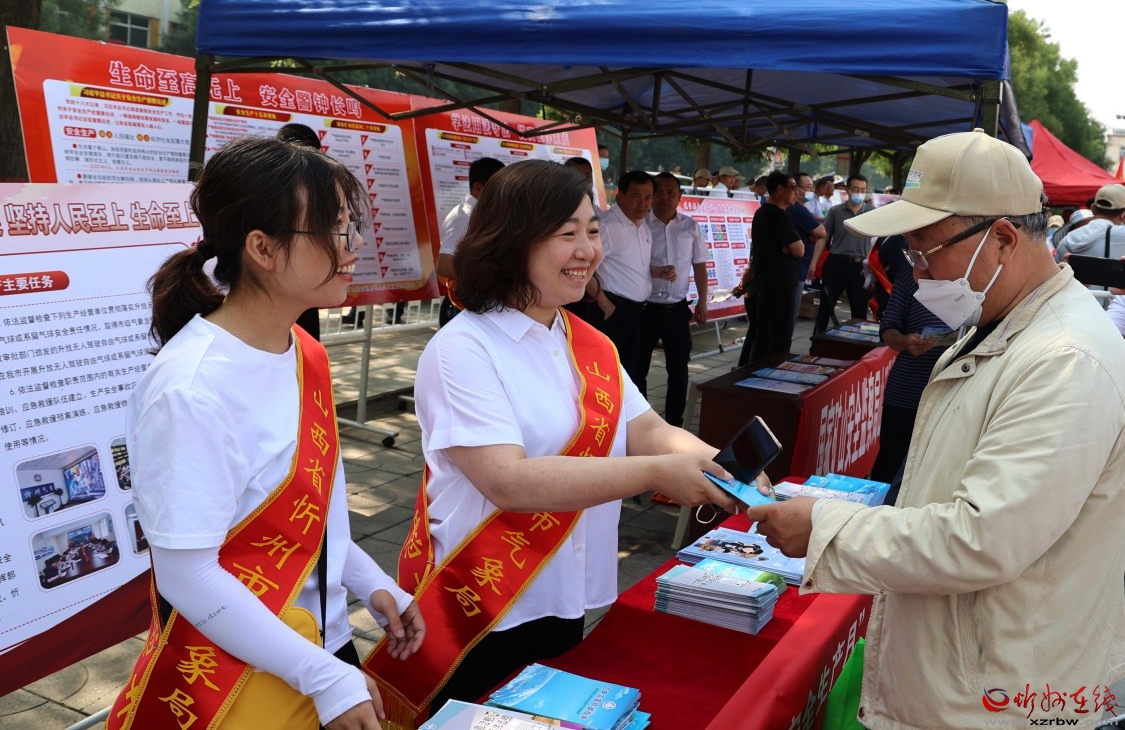6月16日,我市2022年“安全生产月”启动仪式暨安全咨询日活动在城区体育广场举行。今年6月是第21个全国“安全生产月”,主题为“遵守安全生产法 当好第一责任人”。图①为活动现场;图②为消防人员现场展示消防器材;图③为过往群众认真了解安全知识;图④为专业人员进行模拟急救演练;图⑤为工作人员向过往群众发放宣传资料并提供咨询服务。 (张存良 摄)