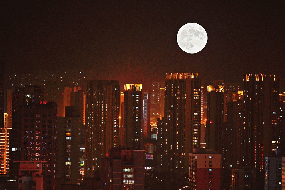 中秋佳节,一轮圆月映照省城万家灯火。本报记者李兆民摄