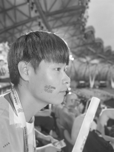 除了吉祥物受欢迎,省运会开幕式现场还有一道独特的风景——很多观众脸上都有“我爱大同”的贴标,成为开幕式最时尚的“应援专属”。