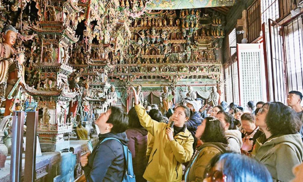 近年来,山西坚持以文塑旅、以旅彰文,把文旅产业作为支柱产业、民生产业、幸福产业来抓,推出“跟着悟空游山西”等特色活动,带动文旅市场持续升温。图为2025年3月21日拍摄的《黑神话:悟空》取景地隰县小西天景区,精美的悬塑让游客们目不暇接。 山西日报社记者 申晋光/摄