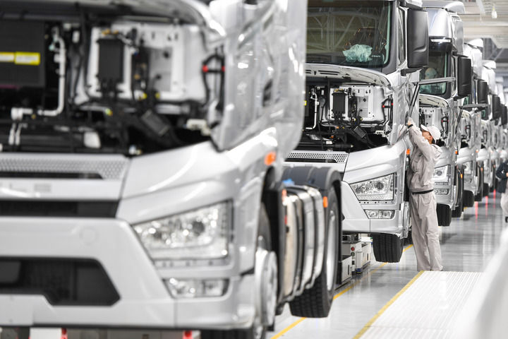 2024年2月19日,工人在位于吉林省长春市的一汽解放J7整车智能工厂装配车辆。新华社记者 张楠 摄
