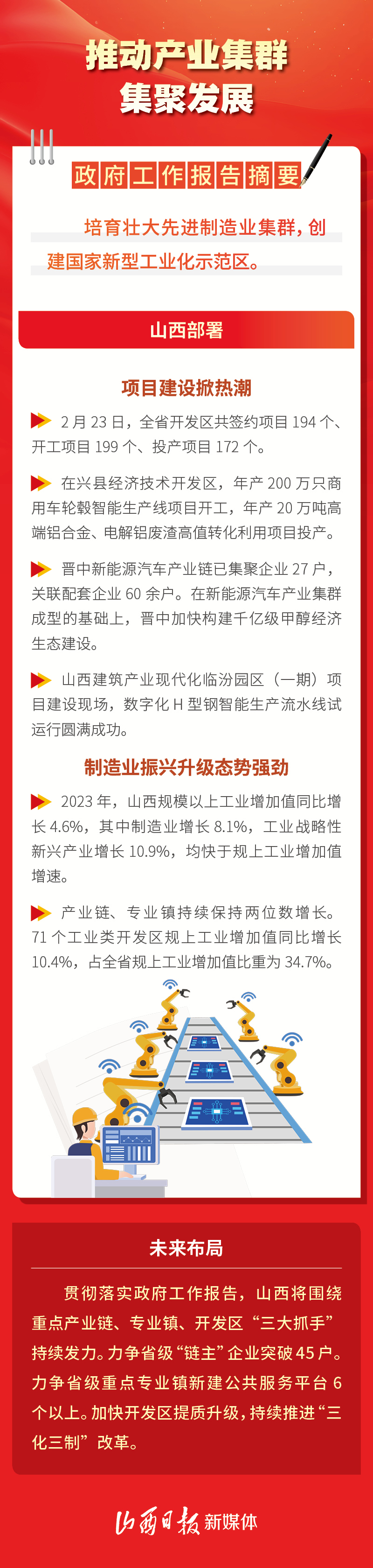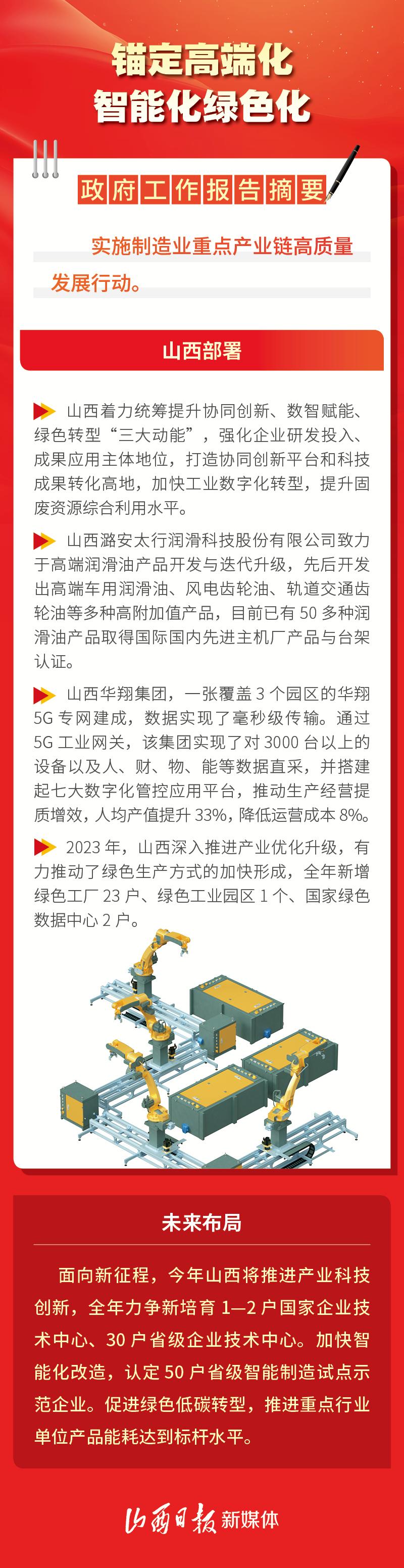 今年的政府工作报告,对制造业发展进一步提出明确要求,必将鼓舞山西在加快建设中部地区先进制造业基地的大路上阔步前进。