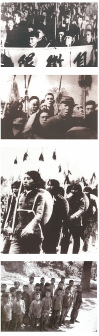 图4 中条山人民抗日武装自卫队、晋中人民抗日武装自卫队、兴县妇女先锋队、沁源县儿童团。