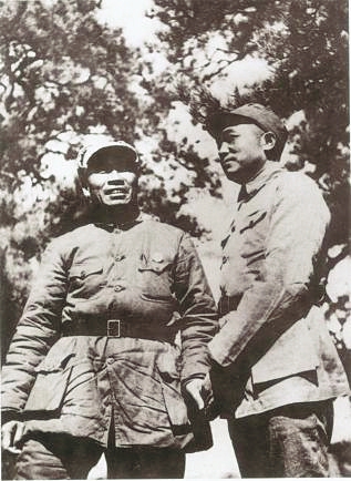 图7 八路军总司令朱德(左)、副总司令彭德怀(右)在山西武乡县八路军总部驻地。