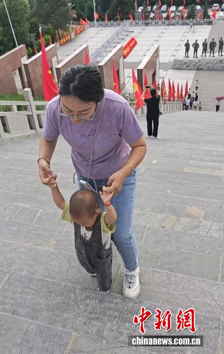蹒跚学步的孩子正在攀爬象征纪念115师的115级台阶。 记者 郎朗 摄
