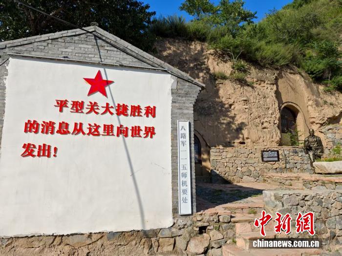 灵丘县白崖台乡白崖台村,“胜利之光”窑洞广场上,一座“引路人”雕塑定格了1937年村民为八路军引路的一瞬。旁边一座青砖瓦房的墙上写着:“平型关大捷胜利的消息从这里向世界发出!”