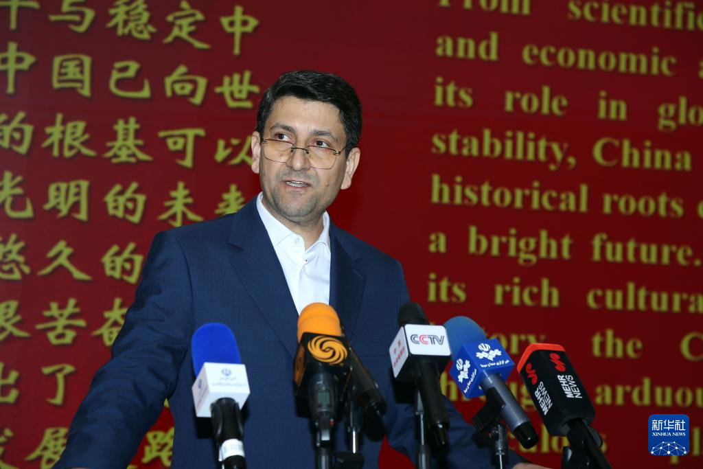 9月22日,在伊朗首都德黑兰,伊朗通信和信息技术部长哈希米在庆祝中华人民共和国成立76周年招待会上讲话。新华社记者 沙达提 摄