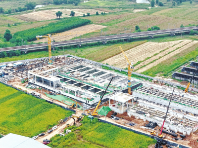 10月3日,山西转型综改示范区汾东污水处理厂水质提升项目建设现场一派繁忙。本报记者王瑞瑞摄