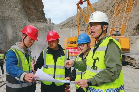 国网新源山西浑源抽水蓄能电站工程部工作人员正在对拦河坝现场施工情况进行检查。本报通讯员摄