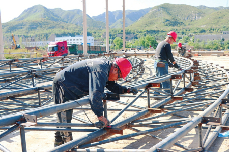 昔阳经开区内,施工人员正在进行打磨作业。本报通讯员摄