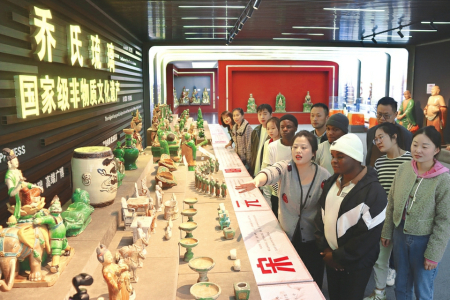 10月4日,中外游客徜徉于阳城琉璃博物馆,感受国家级非遗代表性项目“乔氏琉璃”的独特艺术魅力。陈来全摄