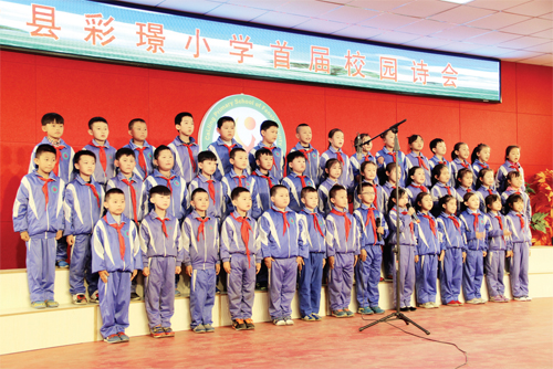 “六一”国际儿童节来临之际,繁峙县彩璟小学举办了首届校园诗会活动,这是该校全面打造“书香校园”系列文化活动的一部分,全校二年级以上21个班级1260名学生参加了活动。(乔伟 郎正伟 摄)
