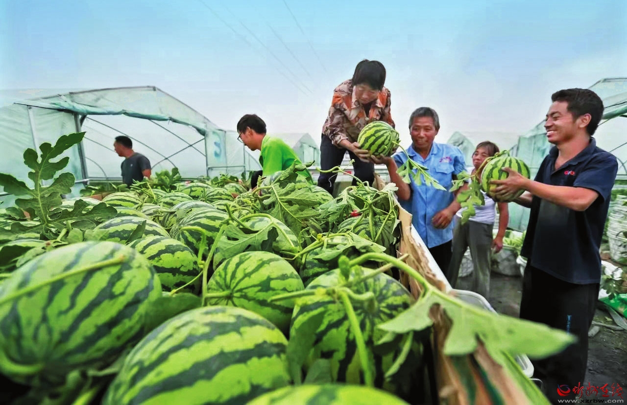 当下,正值西瓜采摘旺季,走进忻府区合索镇会里村侯月英的西瓜种植大棚,绿油油的瓜藤下,圆滚滚的西瓜分外诱人。慕名而来的顾客络绎不绝,争相品尝这份“甜蜜”。侯月英介绍,村里主要种植“麒麟美都”新品种,其生长周期短、口感佳。