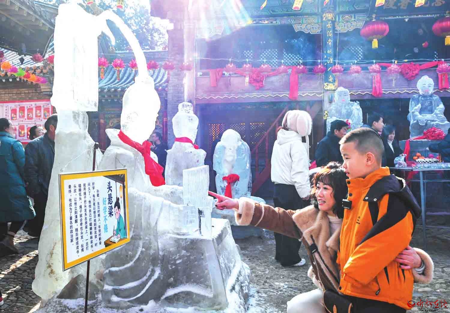 1月26日,代县峨口镇佛光庄村举办第45届冰雪节,冰雕作品既有象征马年到来的骏马奔腾,也有铁杵磨针、曹冲称象等传统故事题材,为冰雪节增添了浓厚的文化气息。(