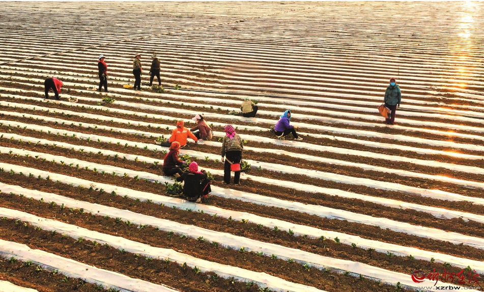 4月2日,忻府区阳坡村,村民正在栽植小白菜。(