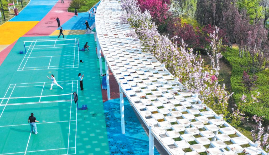 市民在体育公园运动健身,不负好时光。范琛摄