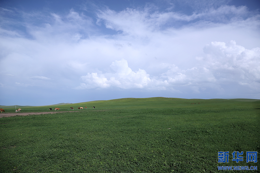 新华网呼伦贝尔8月3日电(曹桢)7月下旬以来,几场雨水结束了呼伦贝尔持续了一夏的旱情。牧民其日麦拉图家的14000亩草场,恢复了水草丰美的景象,成群的牛羊散落其间,草原上的绿色美景绵延不绝。
